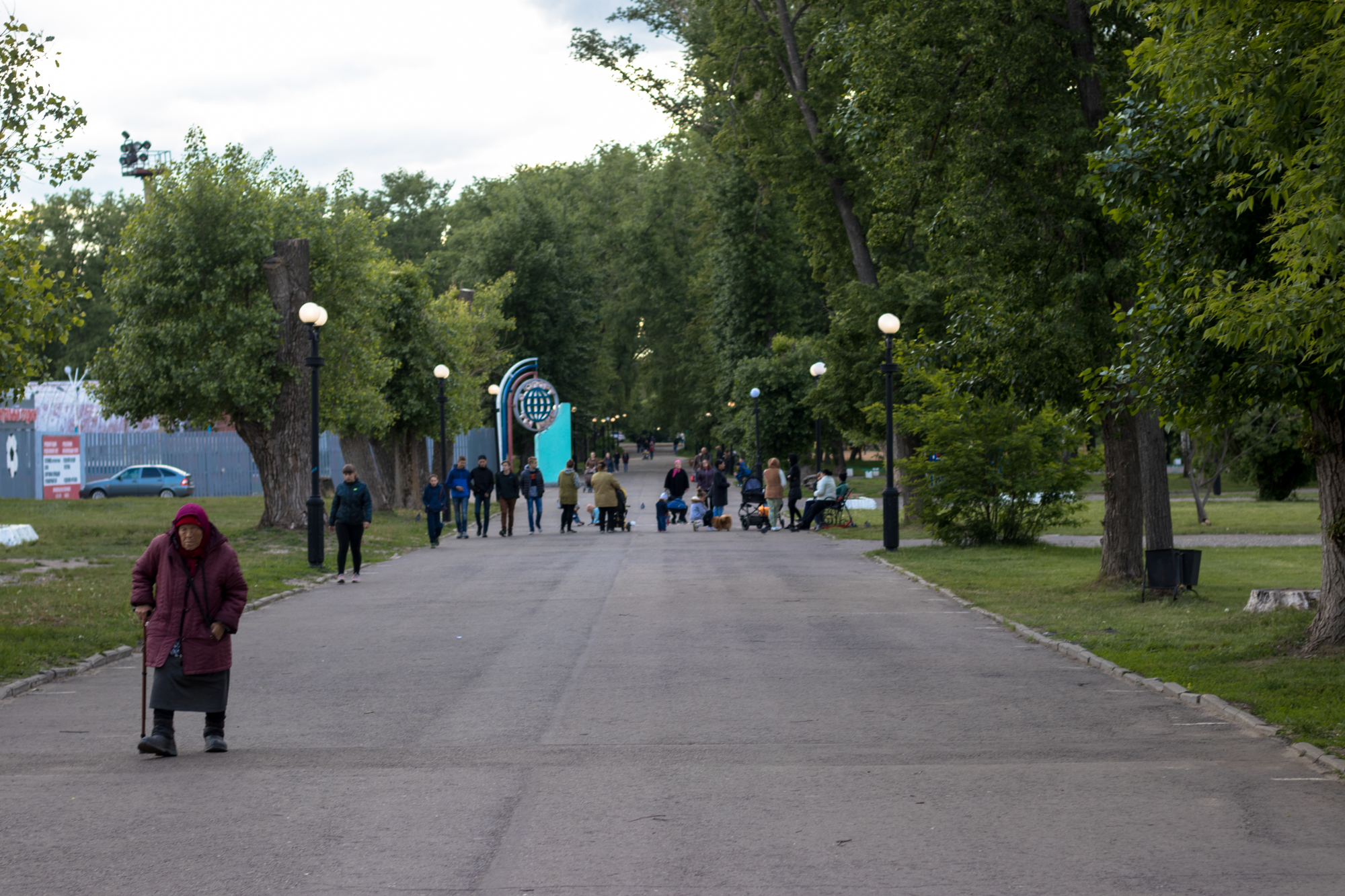 Традиционно публичные мероприятия в городе проводятся в другом месте — ближе к административным зданиям. Гайд-парк удален от ведомственных зданий, расположен у реки на окраине населенного пункта. В выходные дни в парке людно: здесь проводятся танцы для пенсионеров, имеются аттракционы и площадка для воркаута. Парк широкий, представляющий из себя зеленую зону, разделенную тропинками, ведущими к различным площадкам. Фонари работают. Место не заброшено и не запустело, но цель собирающихся здесь - отдых. В парке имеется крытая сцена, перед которое есть несколько лавочек. Наличие туалета вызывает вопросы. Завсегдатаи парка утверждают, что где-то был, но обнаружить его не удалось. Асфальт в парке не обновлялся давно, изрядно износился, местами имеет выщербины, но состояние удовлетворительное.