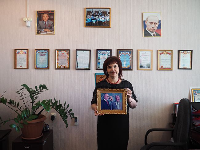 К российско-казахстанским отношениям здесь относятся очень трепетно и стараются никого не обижать. На стене в кабинете директора школы №1 Оксаны Гузиковой висят две фотографии: Владимира Путина и Нурсултана Назарбаева. На столе стоит еще один снимок в массивной позолоченной раме: там два президента запечатлены во время визита на космодром.