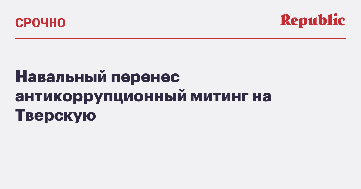 Глава Фонда борьбы с коррупцией Алексей Навальный заявил о переносе антикоррупционного митинга оппозиции 12 июня на Тверскую улицу. Об этом он написал в своем блоге.