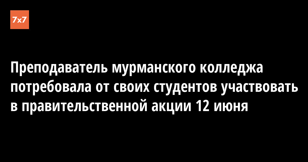 Преподаватель мурманского колледжа потребовала от своих студентов участвовать в правительственной акции 12 июня