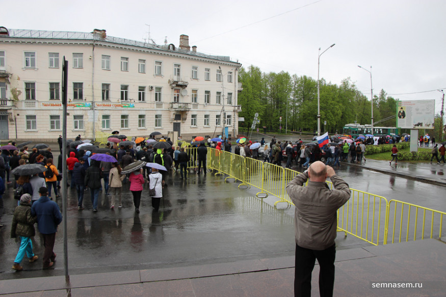 Через два часа после начала митинга организаторы попросили выступающих говорить коротко: погода не располагала к длительному собранию. Дождь и сильный ветер (власти Петрозаводска не согласовали митинг в центре города, отправив протестующих в гайд-парк на берегу Онежского озера) заставили многих уйти, не дождавшись шествия, запланированного в конце мероприятия. Вместе с тем по улицам города под громкое скандирование «Мы здесь власть!», «Один за всех, и все — за одного», «Жулики и воры, пять минут на сборы», «Россия будет свободной» и им подобных лозунгов прошло не менее двухсот человек.