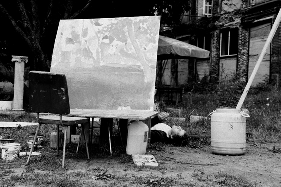 © Фейсбук Евгения Медведева Работа из серии «Бойс» в доме Наркомфина Окончательно переквалифицироваться из фотографа в живописца Медведев был вынужден в силу жизненных обстоятельств. «У него просто закончились деньги, — объясняет Алена Сойко, последняя девушка Медведева, познакомившаяся с ним в период его проживания в Наркомфине. — Ручная печать фотографий — очень дорогое удовольствие. А когда ты безработный, да к тому же и с зависимостями, заниматься этим еще сложнее. В Наркомфине у него был единственный фотоаппарат “Броника”. Но так как он не платил аренду и вечно был в списке должников, однажды хозяин не выдержал, ворвался в его студию и забрал самое ценное, что там было, — фотоаппарат».