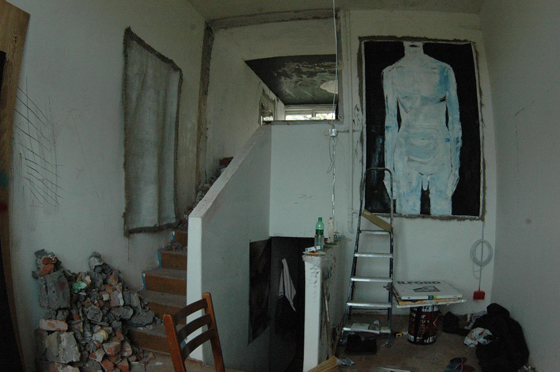 Импровизационных навыков требовало не только сохранение отношений с людьми, но и нахождение временных пристанищ в чужом городе. Ими становились подвальные сквоты с сомнительными резидентами, лестничные клетки домов новых подружек, мастерские и дачи знакомых художников, а также волонтерские лагеря на арт-фестивалях вроде «Архстояния», предоставляющие питание и ночлег за работу. Достаточно долго, не платя аренды, Медведеву удалось прожить в Доме Наркомфина — в результате хитрых махинаций одно время в его распоряжении были две просторные студии. Незадолго до переезда в Наркомфин начались эксперименты Ма с живописью. Одна из первых серий «Бойс» была сделана на трехметровых негрунтованных холстах, на которых художник изобразил безликие обнаженные фигуры неопределенного пола с многочисленными ссадинами и шрамами на теле.