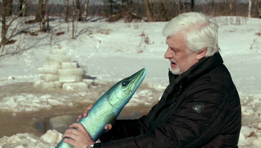 © Лига экспериментального кино Кадр из фильма «Прорубь» Совершенно иному измерению российской жизни, не физическому, но эфирному, зыбкой телевизионной виртуальности, посвящена показанная вслед за «Теснотой» «Прорубь» Андрея Сильвестрова — киноверсия его же спектакля по пьесе Родионова и Троепольской, который был поставлен в Центре имени Мейерхольда еще в 2016-м. Впрочем, родство между спектаклем и фильмом ограничивается текстом пьесы: перейдя к другому медиа, Сильвестров максимально использует его возможности и особенности. Имеющая вид попурри из телепередач другой, почти сорокинской, России, в которой крещенские ныряния в прорубь стали новым 9 Мая, русский язык мутировал в поэтический, а президент поймал говорящую щуку, «Прорубь» в кино превращается в нечто большее, чем сборник веселых историй. Во-первых, конечно, благодаря большему масштабу и присутствию спецэффектов (сгенерированная на компьютере щука, подводные съемки, Иван Турист, режиссер Зинченко и художник Шабуров в эпизодических ролях адептов ЗОЖа). Во-вторых — и это главное — сюжет о телевизоре теперь включает в себя и реальность, лежащую (буквально) по ту сторону экрана; это второе измерение поднимает «Прорубь» на инфернальную высоту, равняя ее с «Нелюбовью» Звягинцева. Но «Прорубь», несомненно, интереснее. Пока циничные критики шутят о том, что хорошо бы дождаться от Звягинцева комедии, Сильвестров уже фактически снял такое кино (забавно, что оба фильма показали на фестивале в один день). Параллели с «Нелюбовью» тут просто изумительные: все герои «Проруби», от президента до алкоголика-фрилансера, жаждут одного — любви. Ищут они ее в стылой, черной воде полыньи — и не в нее ли сиганул от родительской нелюбви пропавший у Звягинцева мальчик Алеша Слепцов? Раздвоение современной реальности, вполне явно читаемое у Звягинцева, — истерическая, сверхинтенсивная жизнь образов и фикций на телеэкране vs. апатичная, набрякшая депрессией вегетация зрителей — приобретает в фильме Сильвестрова предельно гротескные формы. Действие пьесы происходит в измерении масс-медиа, на экране ТВ. Но в киноверсии мы видим и зрителей, предназначенных для этих новостей и ток-шоу: каких-то мамлеевских безмолвных шатунов с тяжелой глубоководной пластикой, снятых в совершенно кричмановской — имеются даже аллюзии на европейскую живопись — манере. Если не знать, что оба фильма снимались параллельно, можно счесть эти интермедии очень точной пародией на Звягинцева. Вся та сочувственная мизантропия, ради которой Звягинцев изводит часы остросюжетной драматургии, убивает женщин и детей и жонглирует цитатами из западноевропейской живописи и самыми заурядными сюжетными шаблонами (в кинотавровской программе уже показаны аж две картины с ровно такой же схемой — короткометражный «Тупик» Антона Сазонова и «Близкие» Ксении Зуевой), здесь достигается одним простейшим техническим кунштюком, незначительным замедлением съемки, дающим стойкий uncanny-эффект. Тела самых обычных стариков, детей, мужчин и женщин наливаются тектоникой, лица растягиваются в гримасу зомби... на большом экране обычная сосиска, мерно покачивающаяся в руке оскалившейся в светлой улыбке бабуси, выглядит не менее величественно, чем какие-нибудь мегаобъекты Аниша Капура или видеофрески Билла Виолы (хотя уместнее, конечно, сра