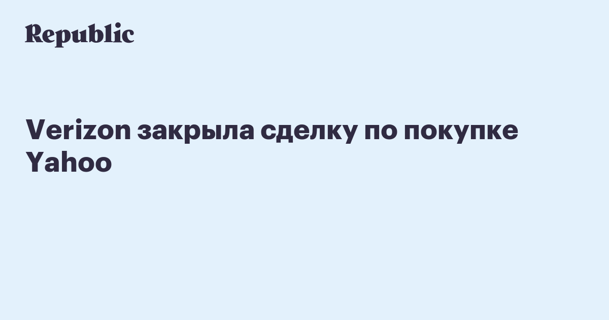 Verizon Communications закрыла сделку по покупке компании Yahoo. Об этом сказано на сайте компании.
