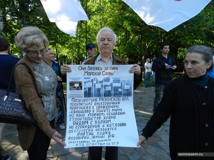 Микрофон был предоставлен всем желающим. Вспоминали о рязанской экологии и протестах дальнобойщиков, о части парка Морской славы, которую отдали под строительство храма и два года назад выкопали котлован; об уже начавшейся предвыборной кампании врио губернатора Николая Любимова, «который не вылазит из телевизора», о безобразной и беспорядочной застройке города и многих других проблемах, завязанных на коррупции.