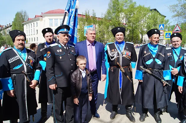 Казаки представительства ТВКО в Республике Коми на параде в честь дня России.