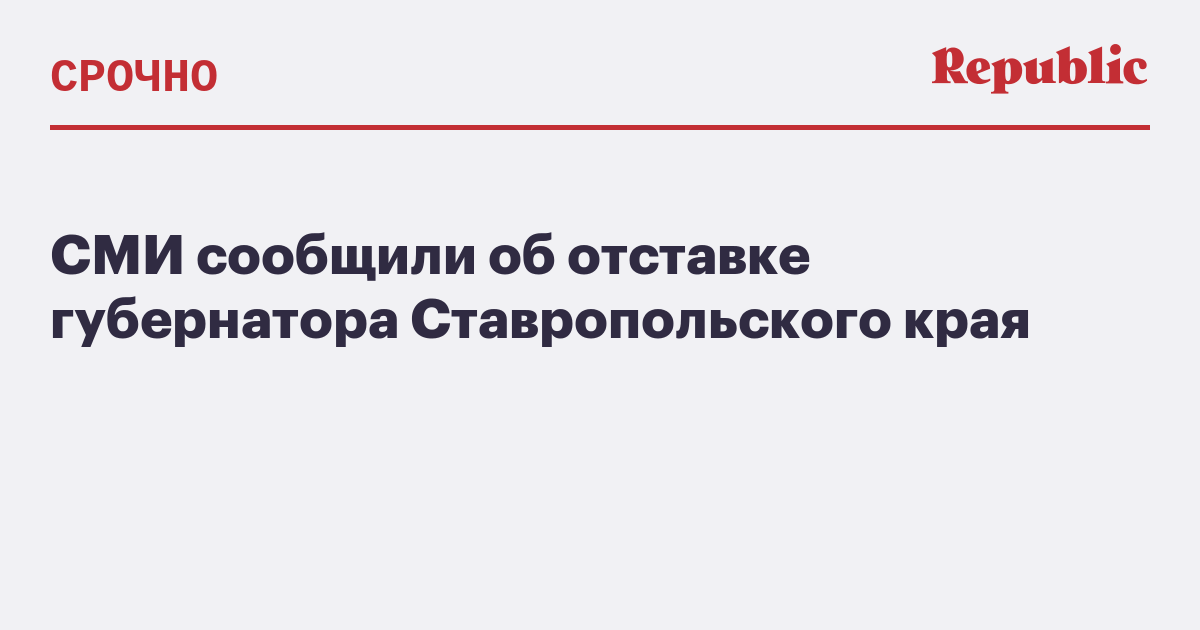 Губернатор Ставропольского края Владимир Владимиров подал в отставку. Об этом сообщил телеканал «Звезда» со ссылкой на неназванный источник.