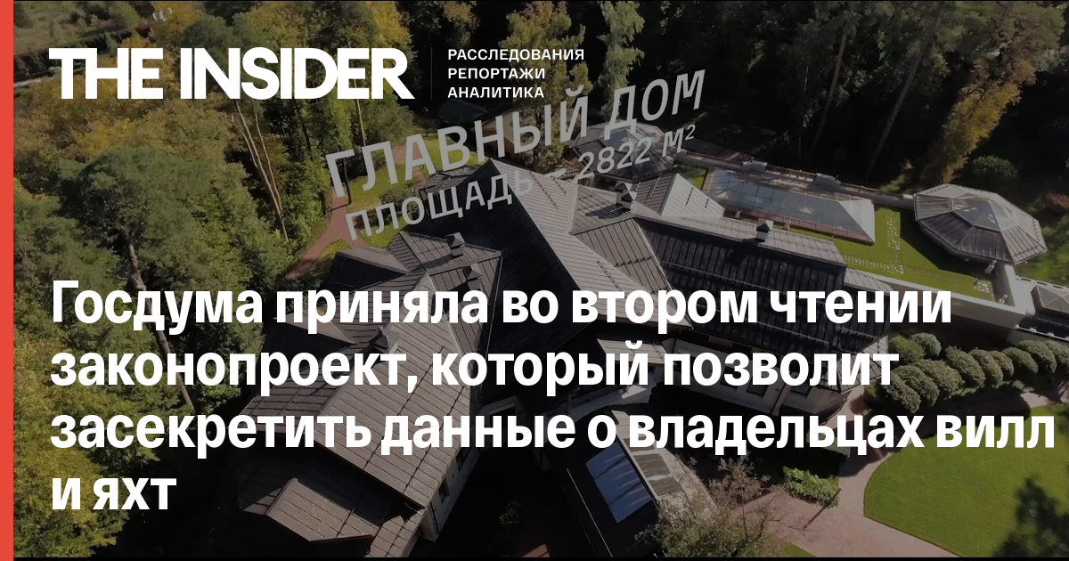 Госдума приняла во втором чтении законопроект, предлагающий засекретить данные о владельцах недвижимости, самолетов и судов. Этот законопроект внесла ранее Федеральная служба безопасности.