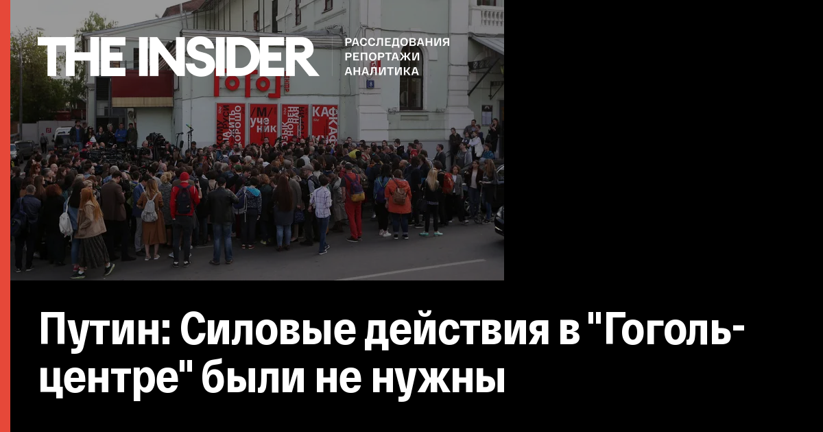 «Речь шла о том, что обыски там, изъятие документов производились при силовой поддержке. Ничего умного я здесь не вижу, потому что нет никакой необходимости заявляться в театр, в бухгалтерию с силовой поддержкой, это просто нелепо», - сказал Путин, отвечая на вопрос о письме в поддержку «Гоголь-центра», которое передал ему актер Евгений Миронов.
