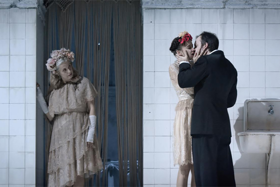 «Ромео и Джульетта» — первый режиссерский опыт Эрика Рюфа на сцене Комеди Франсез. Режиссер перенес действие пьесы в 1930-е годы на юг Италии и создал атмосферу, напоминающую «Крестного отца» – с холодной, жесткой сценографией и ослепительными костюмами Кристиана Лакруа.