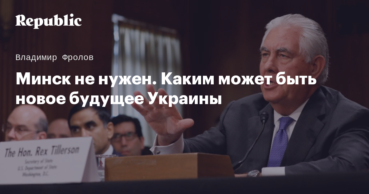 На прошлой неделе госсекретарь США Рекс Тиллерсон, выступая на слушаниях в комитете по международным делам Палаты представителей США, произвел дипломатическую сенсацию. Он допустил возможность урегулирования конфликта в Донбассе вне рамок Минских договоренностей 2014–2015 годов, если Россия и Украина самостоятельно договорятся между собой. «Вполне возможно, что правительства Украины и России смогут прийти к удовлетворяющему их решению через какие-то другие механизмы, не через Минск, но при этом цели Минских договоренностей будут достигнуты», – заявил госсекретарь США.