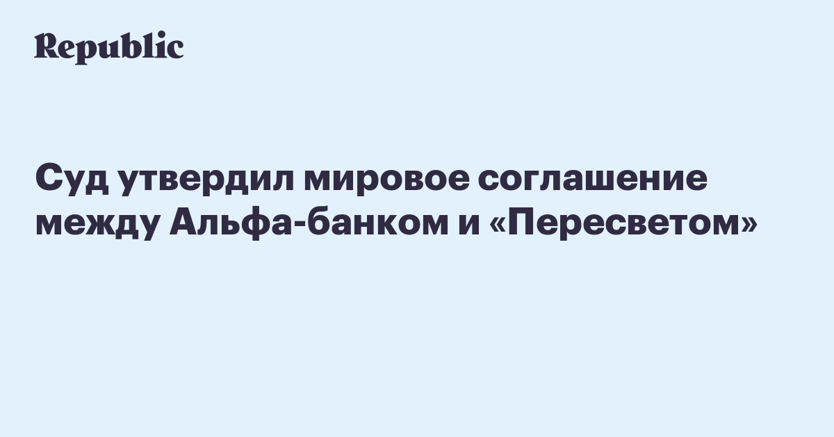 Суд утвердил мировое соглашение между Альфа-банком и «Пересветом»