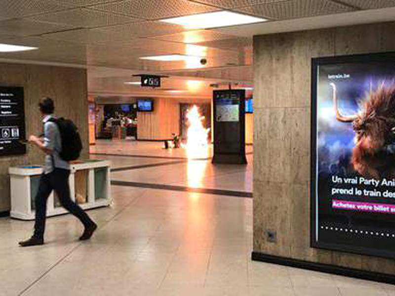 По словам Херрегема, после крика "Аллах акбар" террорист взорвал сумку на колесиках, которая стояла рядом с ним. После этого из сумки повалил густой дым, на вокзале началась паника.