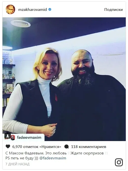 По словам Михалкова, в создании песен участвовал продюсер Максим Фадеев. На прошлой неделе Захарова опубликовала в своем инстаграме фотографию с Фадеевым. В подписи к публикации она анонсировала сюрприз.