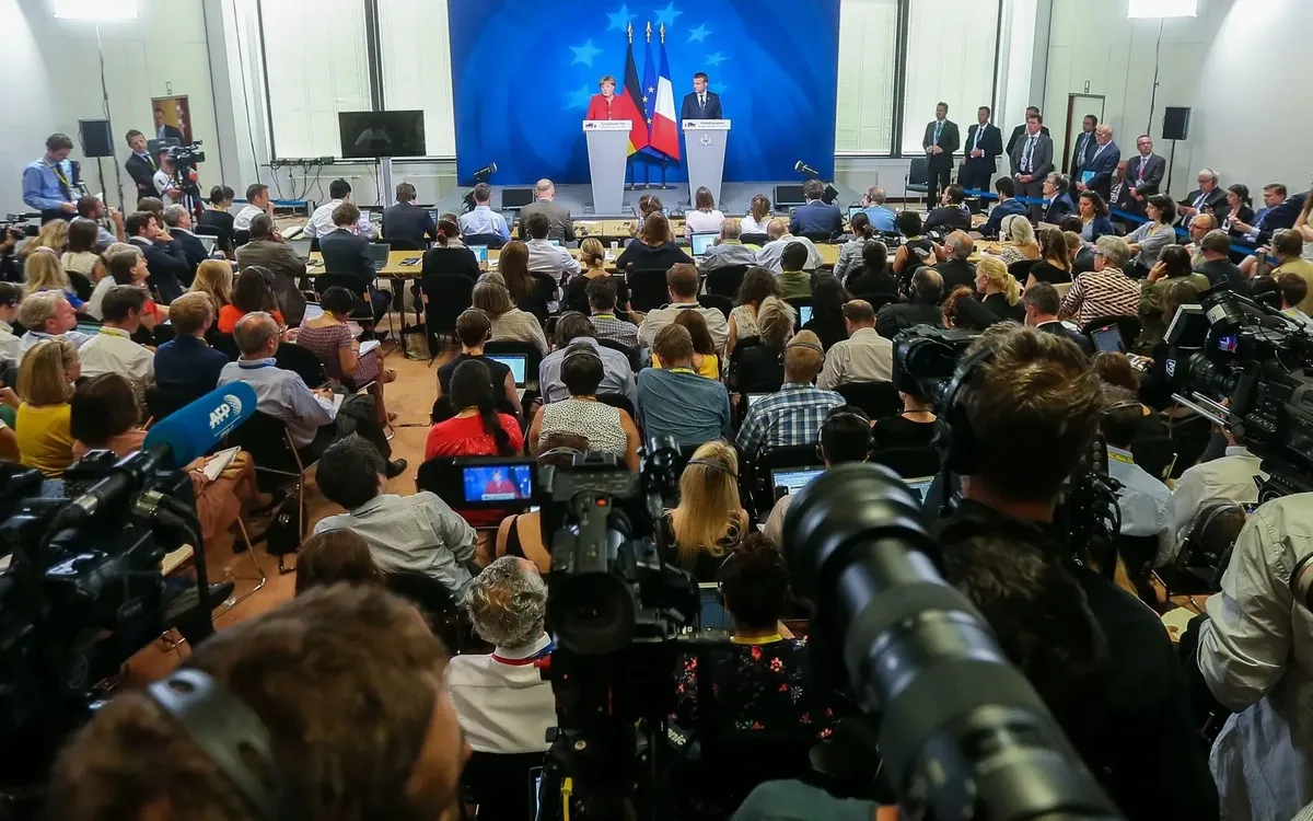 После твита Туска это было единственное выступление о санкциях. Назавтра Меркель, уже в ярко-красной кофте, пришла на пресс-конференцию вместе с Макроном, чтобы продемонстрировать единство франко-германского локомотива ЕС в непростое для него время.