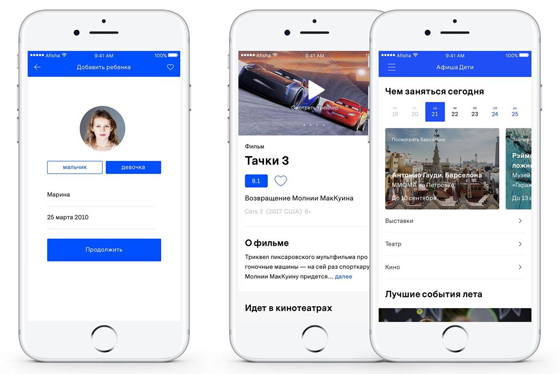 В приложении «Афиша Дети» есть расписания кинотеатров, театров, выставок, городских фестивалей и другая информация. Его можно скачать в AppStore, где говорится, что «"Афиша Дети" знает все о развлечениях, занятиях, вещах и книгах и помогает выбрать то, что подходит именно для вашего ребенка».