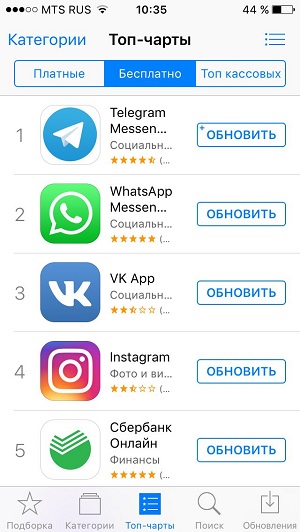 За минувшие сутки приложение мессенджера Telegram переместилось с седьмого на первое место в рейтинге бесплатных приложений в российском App Store. Об этом пишут «Ведомости».