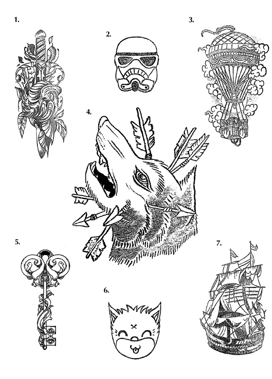 Кинжал хладнокровно пронзает любящее сердце. Был набит после измены близкого человека. Служит напоминанием о том, что необходимо снимать розовые очки и всегда быть начеку.«Имперский штурмовик» (правая нога, щиколотка)