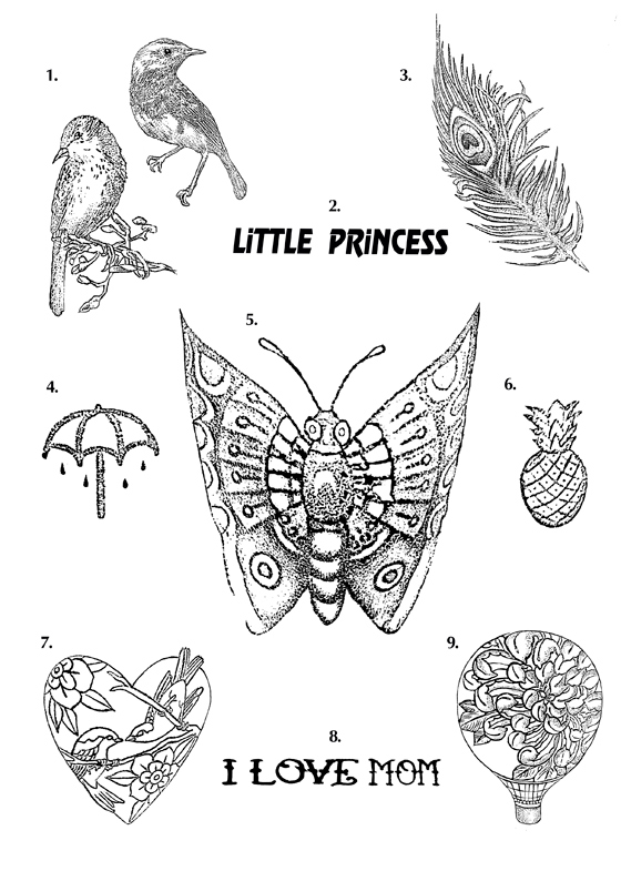 Символизирует свободное, бескрайнее небо. Однако тут же присутствует некая тревожность, поскольку на птиц ведется охота. Боязнь потерять свою независимость, нежелание находиться под чьим-то контролем, давлением.«Little Princess (Маленькая принцесса)» (грудная клетка)