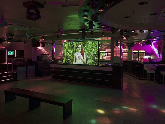 © Henning Rogge / Skulptur Projekte 2017 Людгер Гердес. Angst. 1989 В нескольких минутах ходьбы от предыдущих локаций располагается бар The Elephant Lounge, где Бенджамин де Бурка и Барбара Вагнер демонстрируют музыкальный фильм «Прощай, Германия! Мелодия жизни». Как сказано в каталоге, авторы обратились к «шлягеру, отдельному жанру немецкой поп-музыки» и исследуют его исторические и структурные характеристики, сняв тут же, в Мюнстере, несколько видео, которые позже объединили в общем произведении. В полумраке бара эта работа выглядит завораживающе.