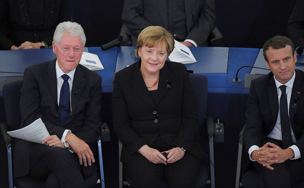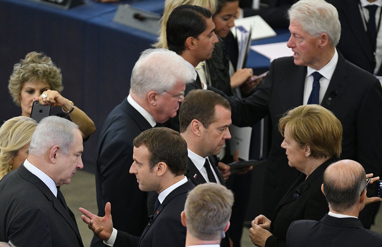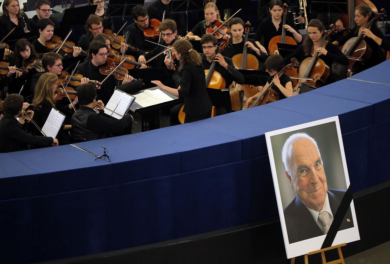 Michel Euler / AP / Scanpix / LETA Глава Еврокомиссии Жан-Клод Юнкер и вдова Гельмута Коля Майке Коль-РихтерPatrick Hertzog / AFP / Scanpix / LETA Премьер-министр России Дмитрий Медведев у гроба Коля, обернутого во флаг Европейского союзаPatrick Hertzog / AFP / Scanpix / LETA Бывший президент США Билл Клинтон, канцлер Германии Ангела Меркель и президент Франции Эммануэль Макрон на траурной церемонииPatrick Seeger / EPA / Scanpix / LETA Политики на церемонии прощания с Гельмутом Колем. На фотографии: премьер-министр Израиля Беньямин Нетаньяху разговаривает с Эммануэлем Макроном, Дмитрий Медведев общается с Ангелой Меркель; рядом с ними — Билл КлинтонPatrick Seeger / EPA / Scanpix / LETA Бывший премьер-министр Италии Сильвио Берлускони и Билл КлинтонMichel Euler / AP / Scanpix / LETA Оркестр на траурной церемонии памяти Гельмута Коля