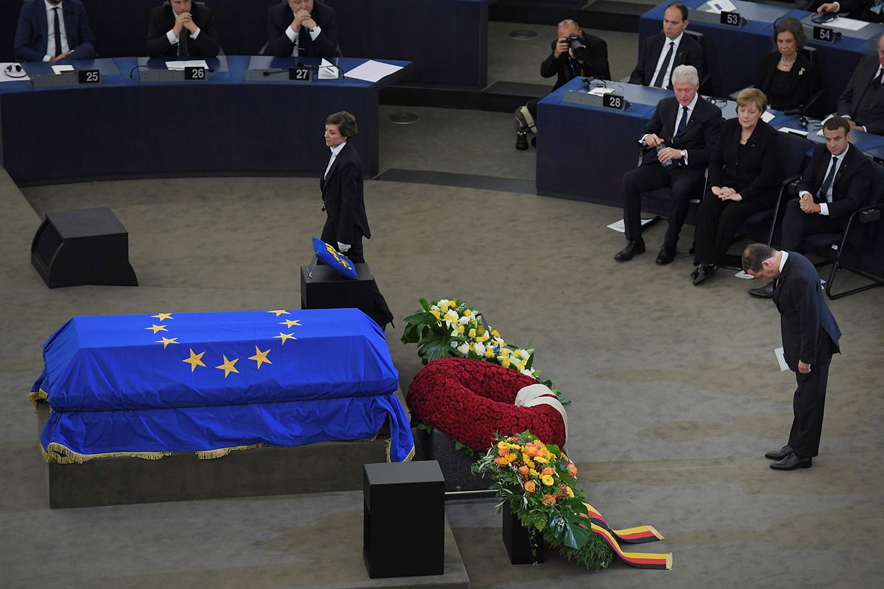 1 июля в здании Европейского парламента в Страсбурге прошла церемония прощания с Гельмутом Колем — бывшим канцлером Германии, который умер 16 июня. Именно при Коле произошло объединение ФРГ и ГДР в одну страну. Проститься с политиком приехали государственные деятели со всего мира: нынешний канцлер Германии Ангела Меркель, российский премьер Дмитрий Медведев, президент Франции Эммануэль Макрон, премьер-министр Израиля Биньямин Нетаниягу, бывший президент США Билл Клинтон и другие. Это первый раз, когда подобная церемония проходит в зале Европейского парламента. «Медуза» показывает, как это было.