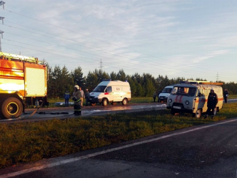 Ранее сообщалось, что в ночь на воскресенье в девяти километрах от города Заинска произошло дорожно-транспортное происшествие с участием грузового автомобиля "КамАЗ" и пассажирского автобуса Neoplan, автобус, следовавший по маршруту "Самара - Ижевск", опрокинулся на проезжей части и загорелся. В аварии погибли 13 человек, пострадали 15. 12 пострадавших находятся в стационарах больниц, трое отпущены на амбулаторное лечение. По одной из версий, водитель автобуса был ослеплен фарами грузовика.