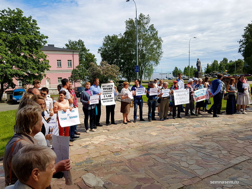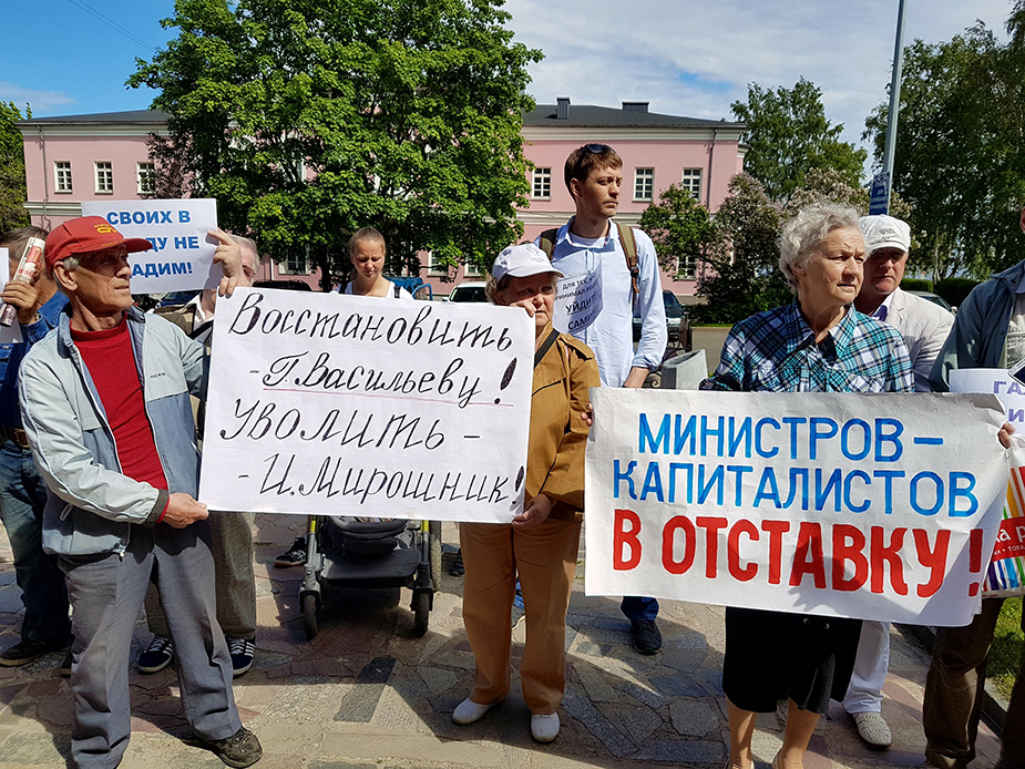 В Петрозаводске 3 июля состоялась акция протеста против увольнения директора лицея № 13 Галины Васильевой. Как сообщает корреспондент «7x7», на пикет у здания администрации города пришли около 40 человек. Среди участников — известные в городе общественники, представители оппозиционных политических партий, учителя и родители учеников лицея.
