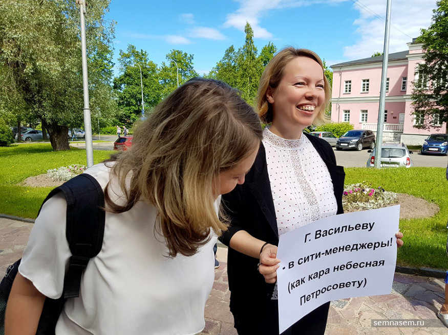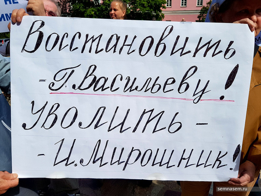 Пикетчики потребовали вернуть Галину Васильеву в лицей, а в отставку отправить сити-менеджера Ирину Мирошник. Кто-то из участников предложил назначить сити-менеджером Галину Васильеву ― «в наказание Петросовету».
