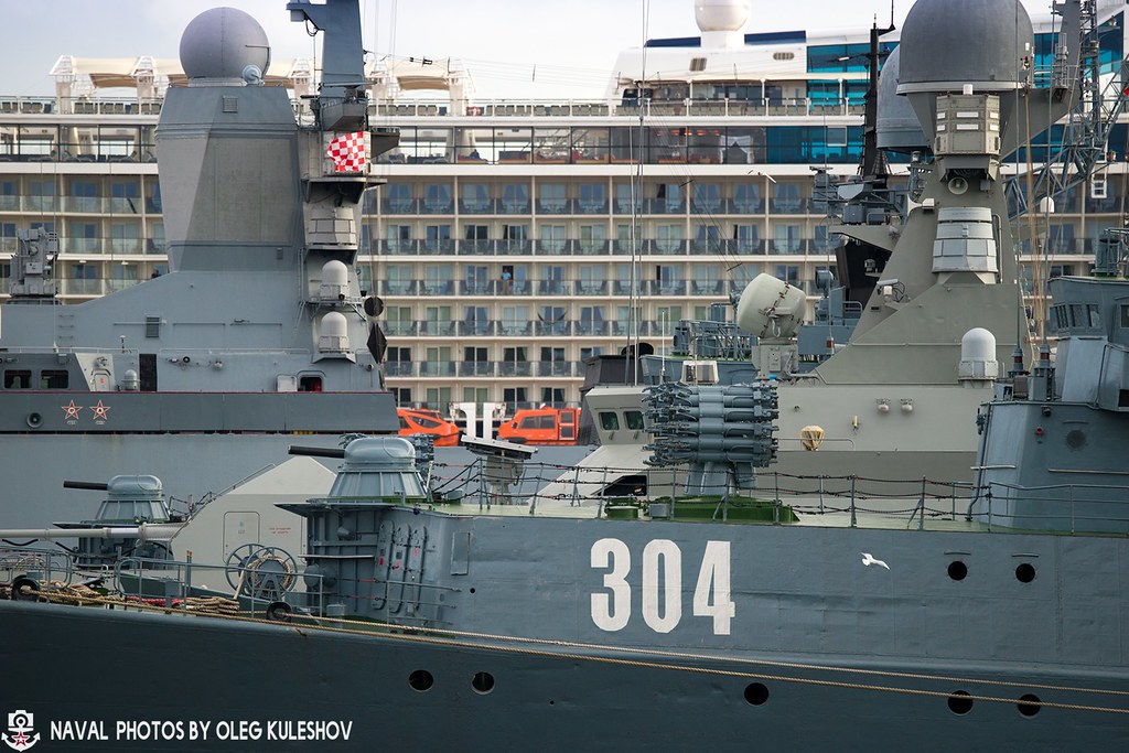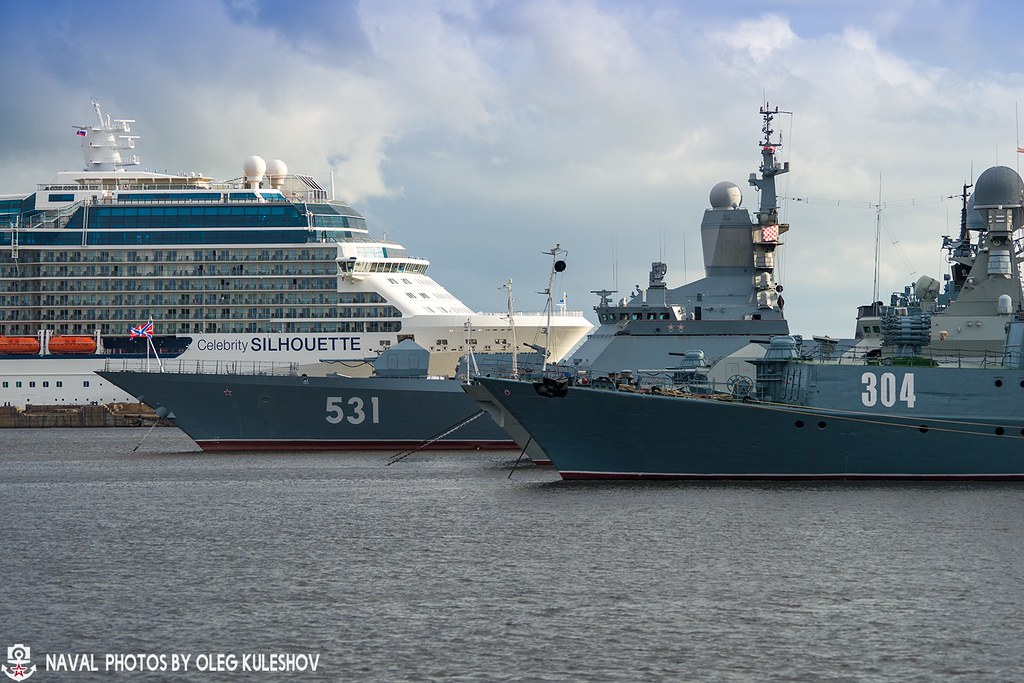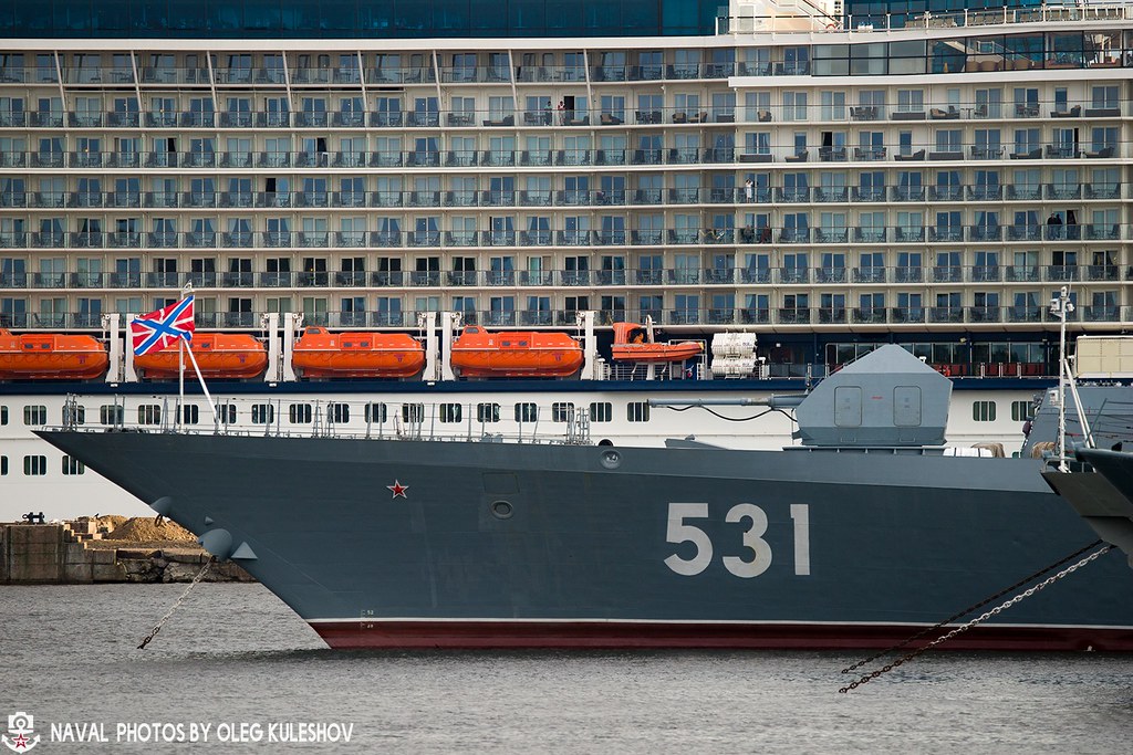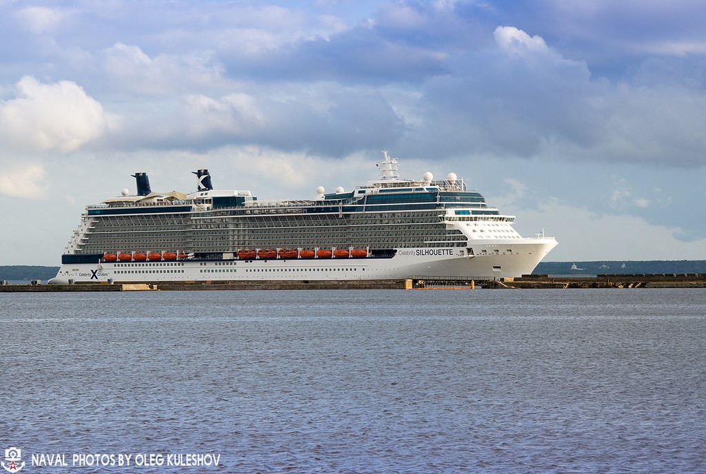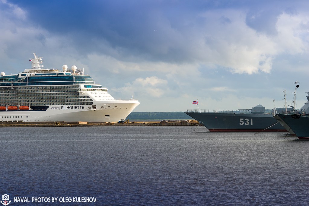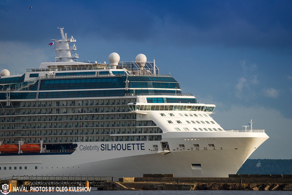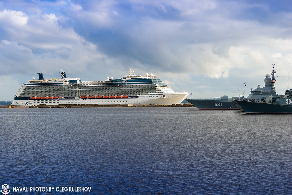 "Celebrity Silhouette" и нос малого ракетного корабля "Серпухов".