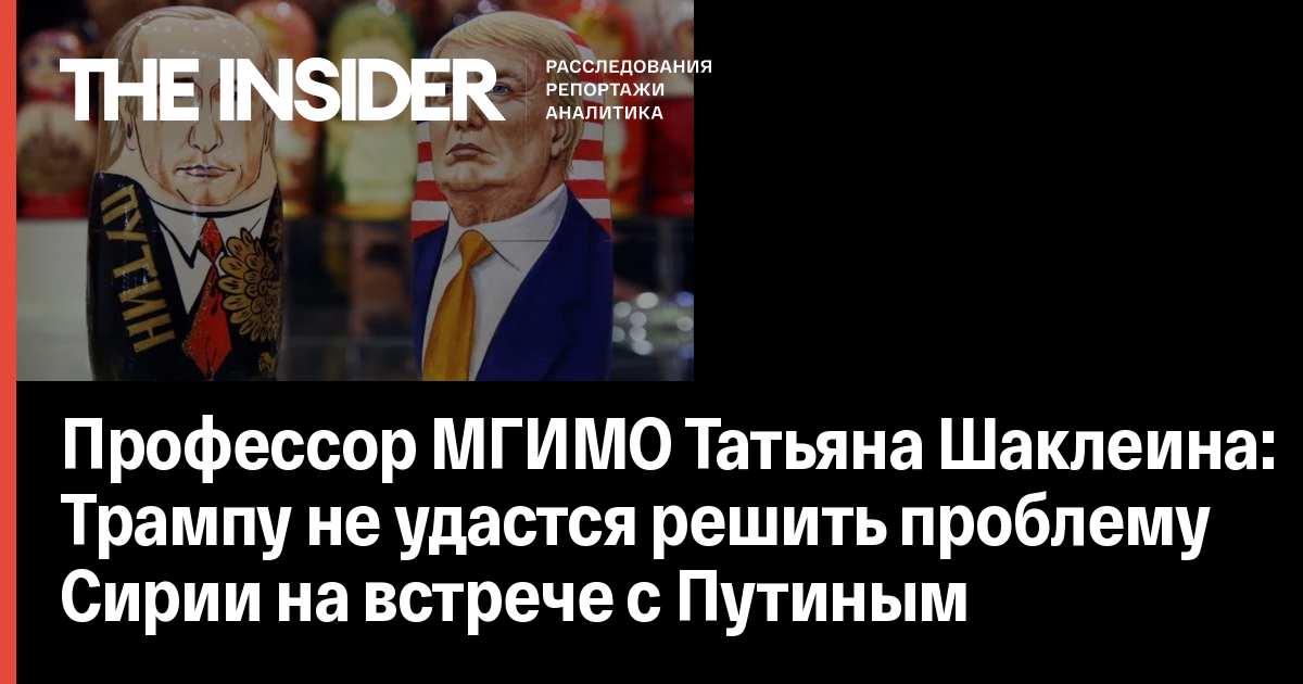 Профессор МГИМО Татьяна Шаклеина: Трампу не удастся решить проблему Сирии на встрече с Путиным