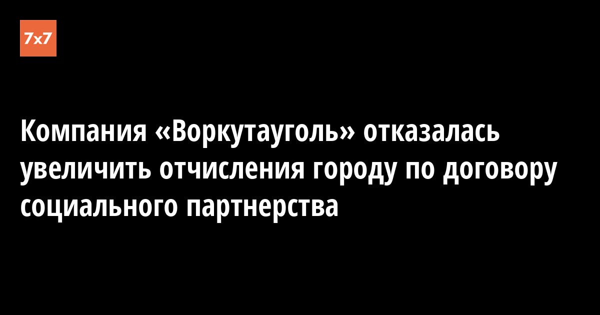 Компания «Воркутауголь» (принадлежит «Северстали») отказалась увеличить сумму, которую ежегодно в последние годы передает администрации Воркуты на нужды города по договору социального партнерства. Об этом говорится в письме за подписью председателя совета директоров «Северстали» Алексея Мордашова, сообщили 5 июля в мэрии (копия имеется в распоряжении редакции).