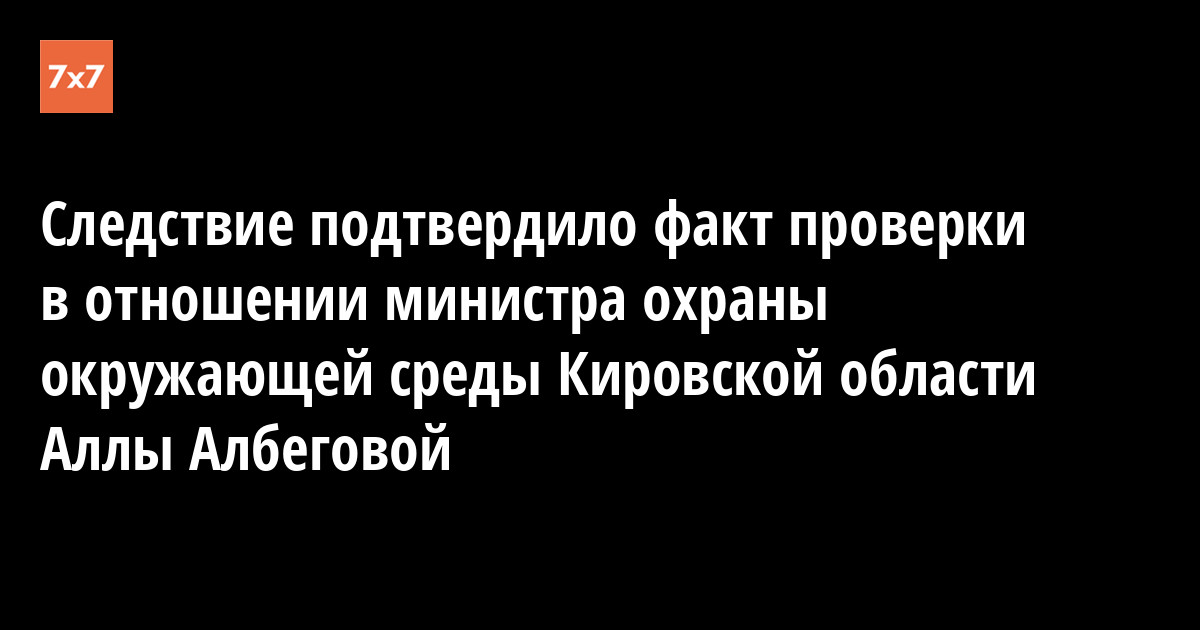 Следователи проводят проверку в отношении исполняющей обязанности министра охраны окружающей среды Аллы Албеговой, говорится в ответе управления Следственного комитета по Кировской области на обращение юриста Ярослава Михайлова.