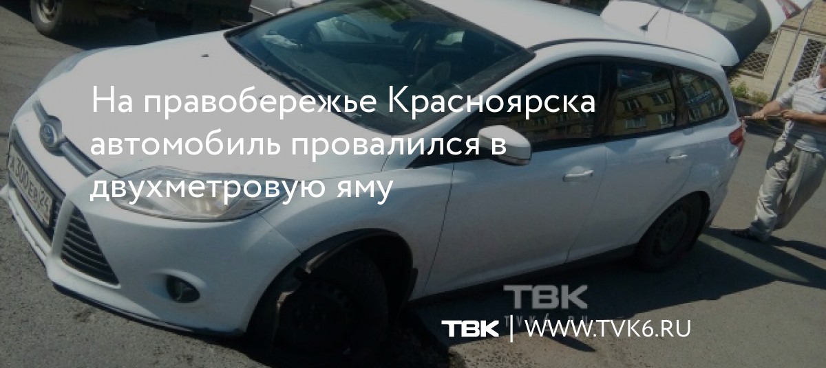 На правобережье Красноярска автомобиль провалился в двухметровую яму