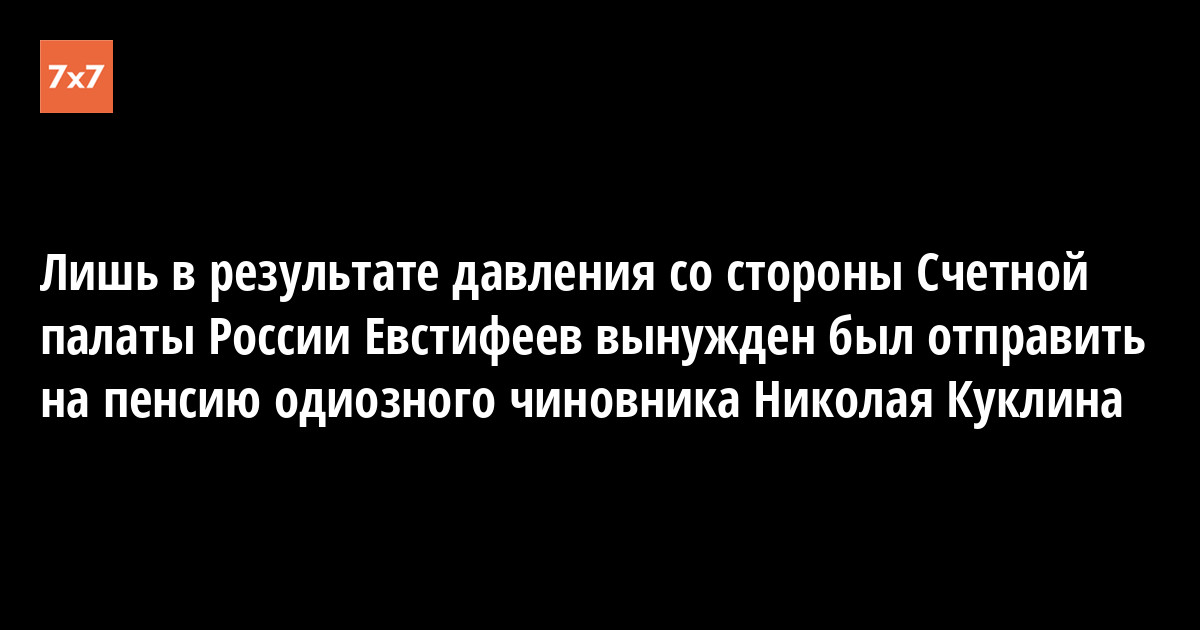 Лишь в результате давления со стороны Счетной палаты России Евстифеев вынужден был отправить на пенсию одиозного чиновника Николая Куклина