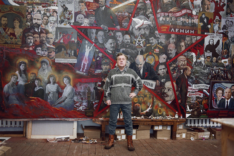 Илья Глазунов у работы «Великий эксперимент», 1990 год. Фото: Мастюков Валентин / Фотохроника ТАСС
