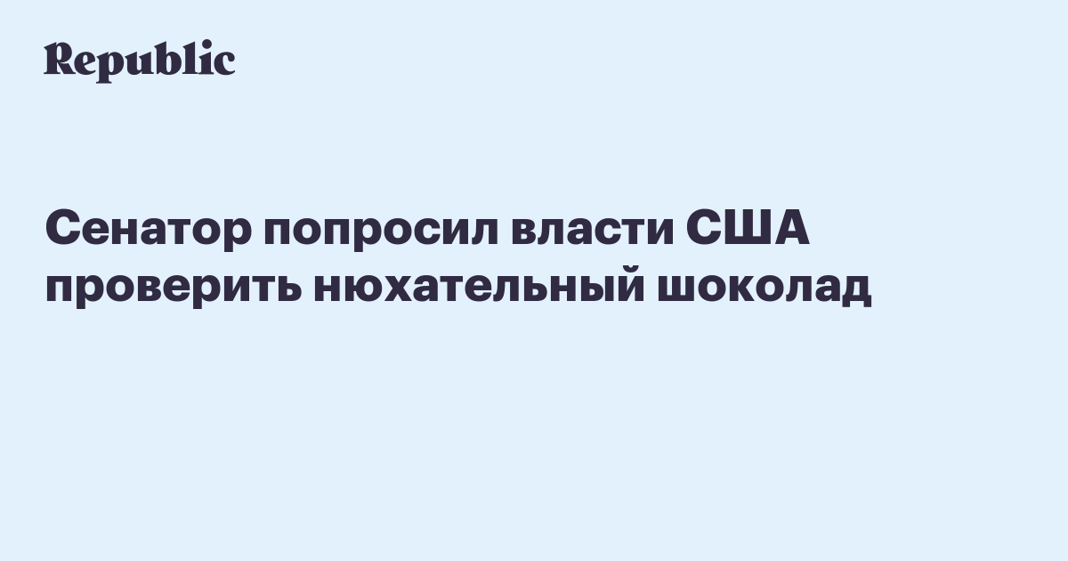 Сенатор Чарльз Шумер попросил Управление по санитарному надзору за качеством пищевых продуктов и медикаментов (FDA) США проверить нюхательный шоколад. Об этом сообщает AP.