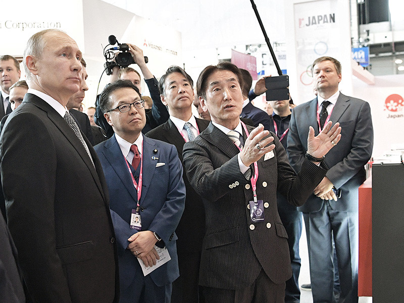 Путину на "Иннопроме" также рассказали, как "умные" японские технологии позволяют сканировать удаленно состояние деталей в роботах и станках на российском производстве, что позволяет оперативно их менять и предотвращать поломки и остановку производства. Представители компании Toyota продемонстрировали президенту РФ модели автомобилей, которые производятся на заводе в Петербурге. Япония в этом году стала страной - партнером выставки.