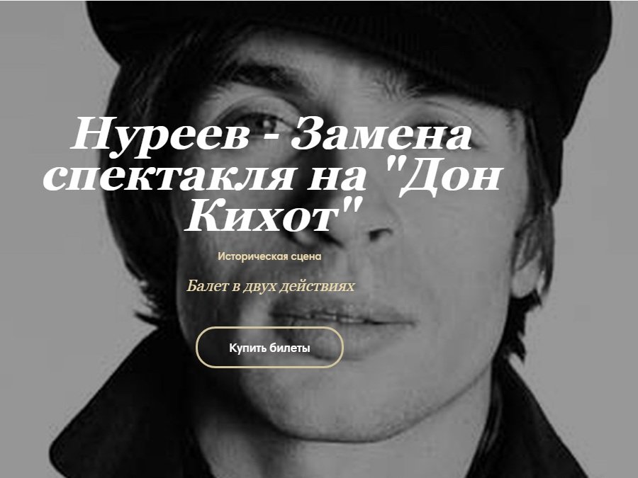 Объявление об отмене спектакля "Нуреев" на сайте Большого театра bolshoi-theatre.ru Во вторник, 11 июля, на сцене Большого театра должна была состояться премьера современной постановки, над которой работали режиссер Кирилл Серебренников, хореограф Юрий Посохов и композитор Илья Демуцкий. Спектакль «Нуреев» был одним из самых ожидаемых и обещал произвести фурор, повторив успех «Героя нашего времени», над которым трудилась та же команда в 2015 году и получила за него «Золотую маску». Но за три дня до премьеры постановки об отношениях выдающихся танцовщиков XX века Рудольфа Нуреева и Эрика Бруна стало известно, что она не состоится. Вместо этого тем, кто купил билеты, пообещали показать «Дона Кихота».