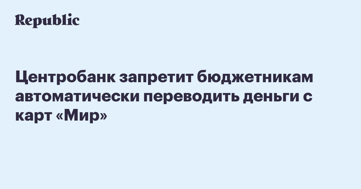Центробанк запретит бюджетникам автоматически переводить деньги с карт «Мир»