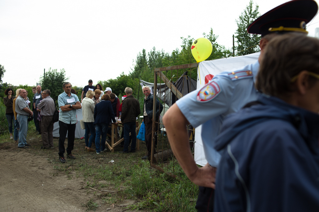 В палаточный лагерь приехала полиция. Сотрудники МВД предупредили участников, что акция не согласована.