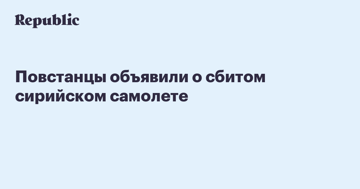Повстанцы рассказали, что они сбили сирийский военный самолет в зоне прекращения огня. Об этом сообщает AFP.