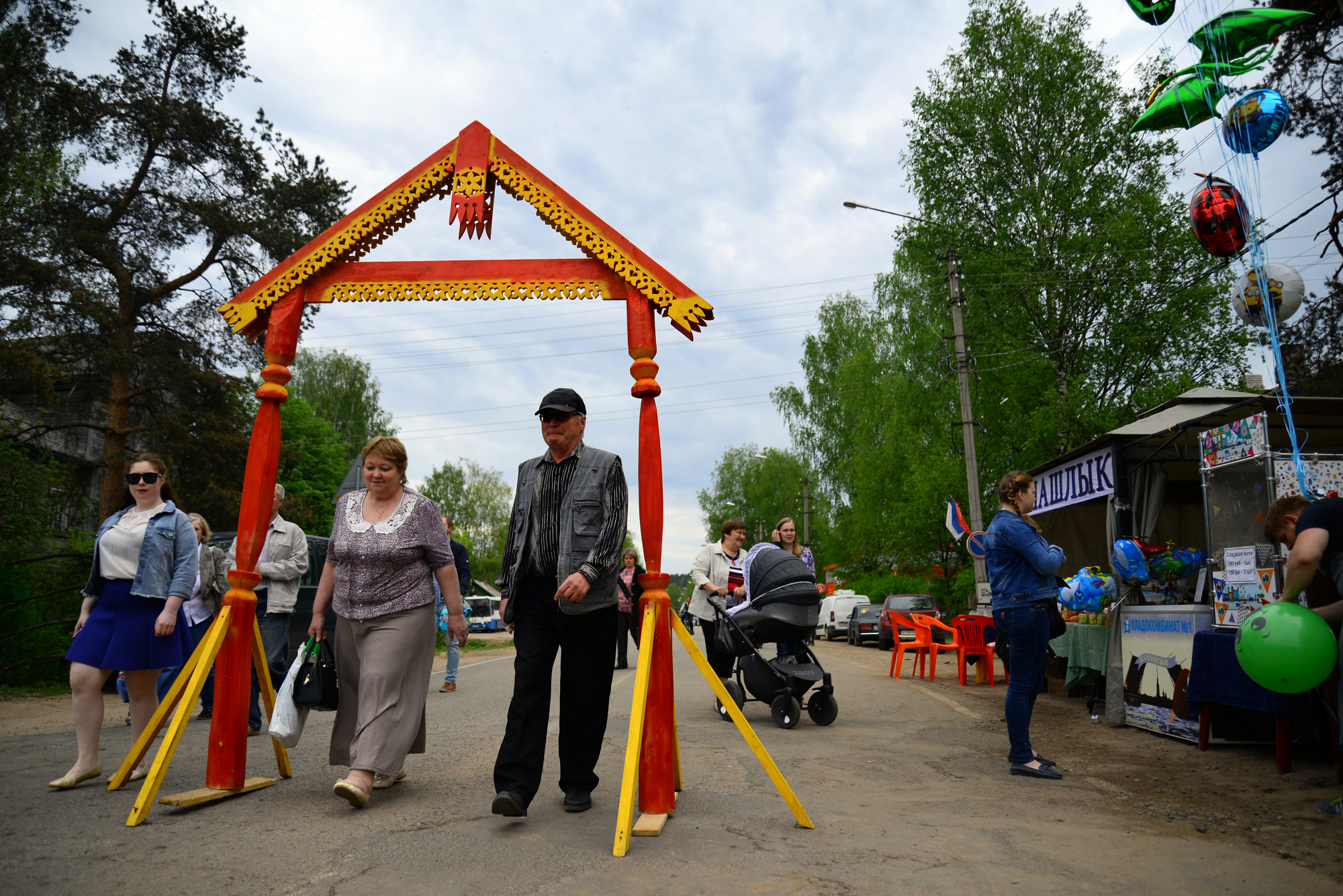 На главной дороге села Винницы стоит пара сетевых магазинов, огороженные заборами деревянные жилые дома и библиотека. Вдоль обочины — десятки припаркованных машин, а по проезжей части, за перегородившей ее полицейской машиной, идет толпа прохожих. Всего на праздник пришло около 6 тысяч человек.