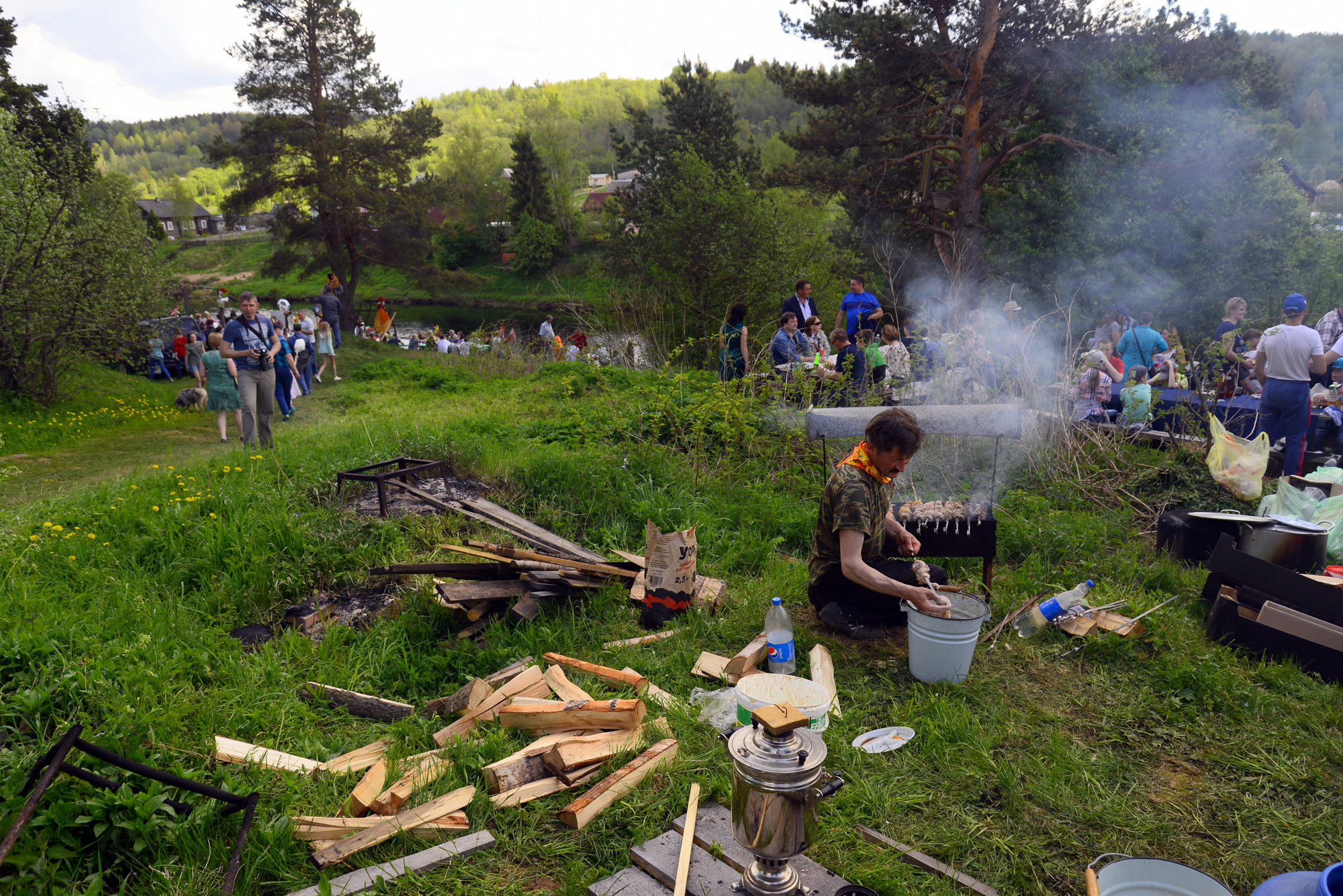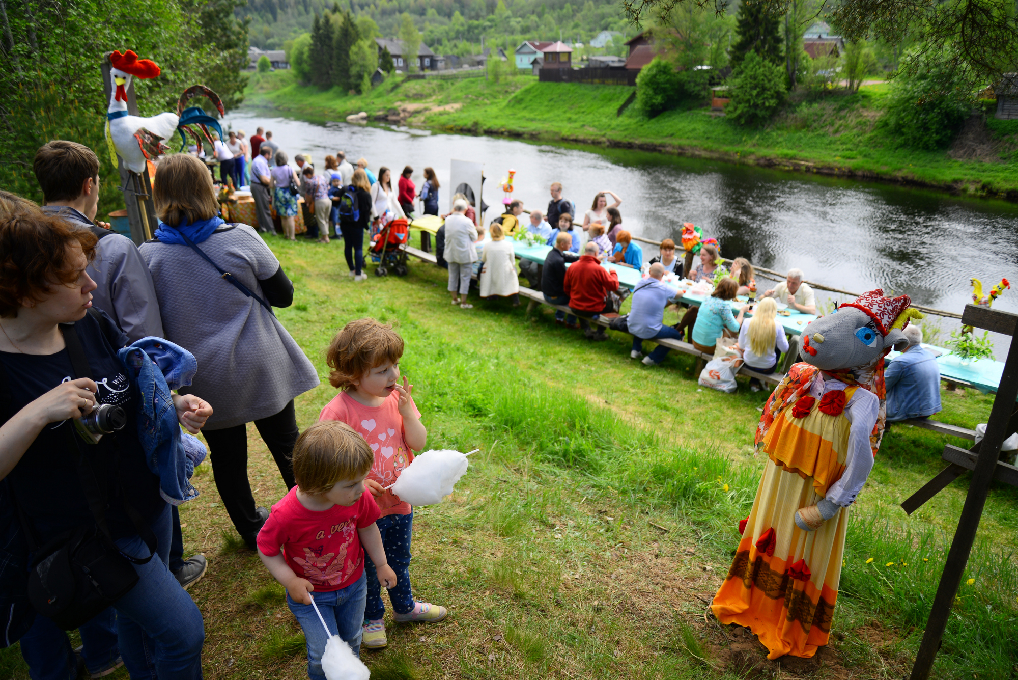 Под конец основной программы праздника торговцы начинают сворачивать прилавки и разбредаются по селу в ожидании вечернего фейерверка. Ближе к реке за длинным деревянным столом гости перекусывают шашлыками и пробуют олудь — вепсское пиво. Посреди главной дороги дети играют пластиковыми мечами, кто-то медленно плетется с площади в сторону поля верхом на лошади. Рядом уже выступивший на сцене русский народный ансамбль под гармонь поет: «Дарья, ты душа, Дарья хороша. Рюмку водочки махнул и пошел вприсядку».