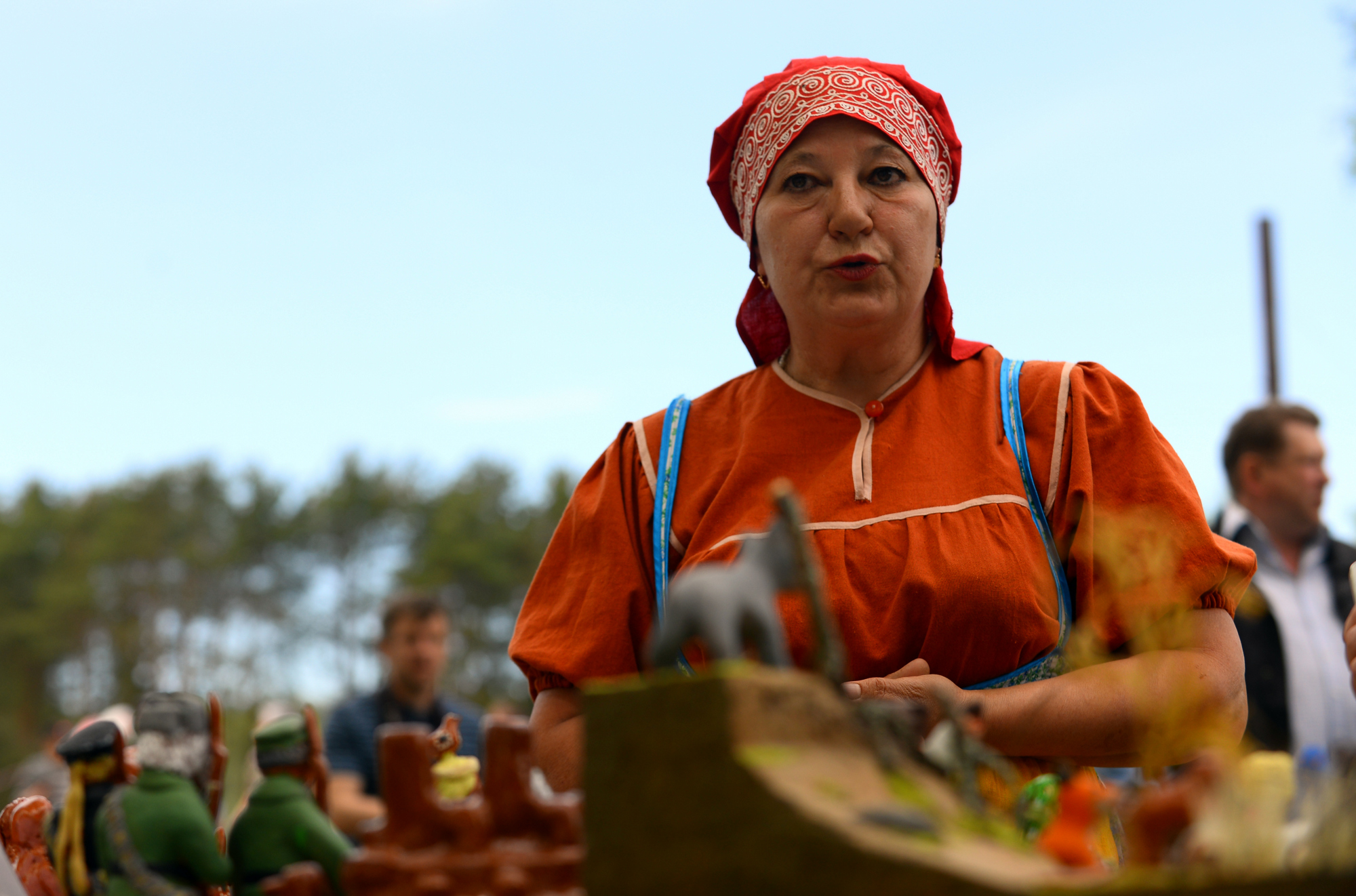 Стоя у стола с десятками глиняных поделок, Юлия Андреевна Иванова из объединения «Оятский умелец» по очереди показывает разноцветные и еще не окрашенные игрушки. Все они посвящены поверьям, традициям и промыслам вепсов.