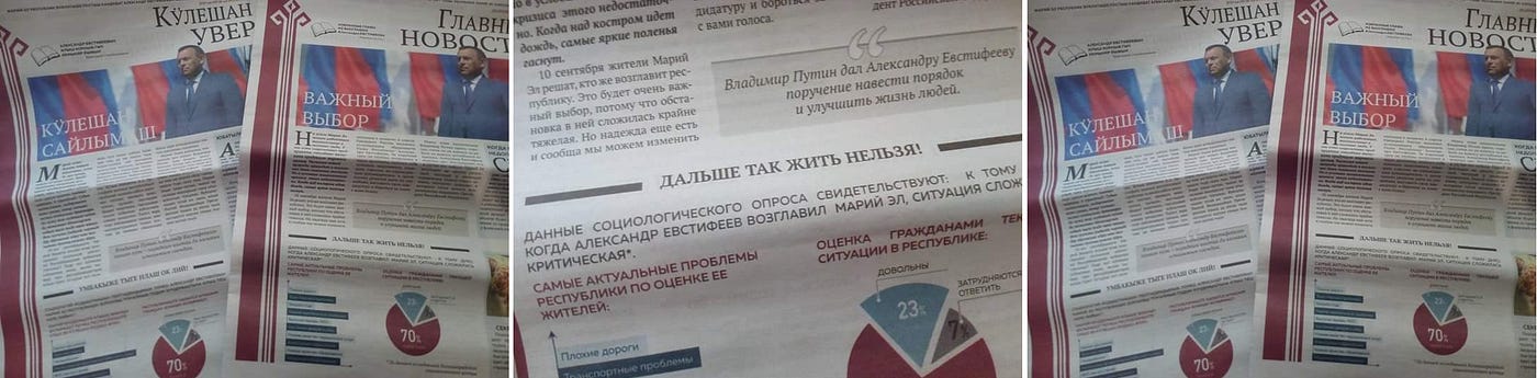 И по местному ТВ в объятиях обоюдности постоянно переповторять о свершившихся “актах возмездия”, чтобы народ ненароком не забывал о плюсах, для подогрева хорошего настроения. Нормально. Ан, нет ничего такого и даже похожего в первой проевстифеевской агитационно-пропагандисткой печатной периодике “Главные Новости”. Неужели банально рано размышляем и мало месяцев прошло? Вдруг ещё от кого избавятся? Растягивают удовольствие? Хых, и бонус в обратку — в №1 данной прессы на первой полосе красуется национальный символ, визуально очень похожий на чувашский, нежели местно-родной марийский. Скорее всего, опосля начала официальной дружбы КПРФ с ЕР данный орнамент порекомендовал лично этнический чувашин Сергей Казанков [шутка юмора, конечно]. Глуповато скошенным образом стартовать в нацреспублике. Но на вкус и цвет… ▼