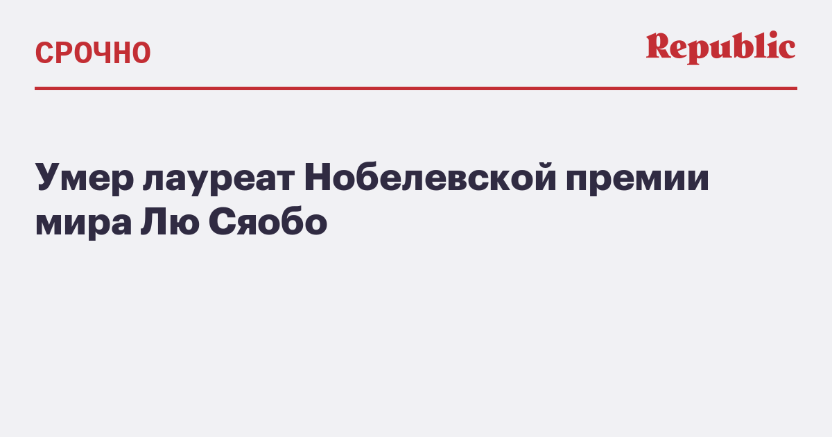 Умер лауреат Нобелевской премии мира Лю Сяобо