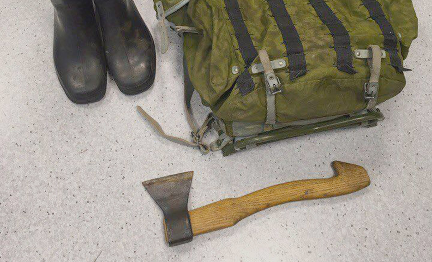 Сапоги, рюкзак и топор, с которыми Литасов вернулся с охоты. Фото: адвокат Алексей Аванесян