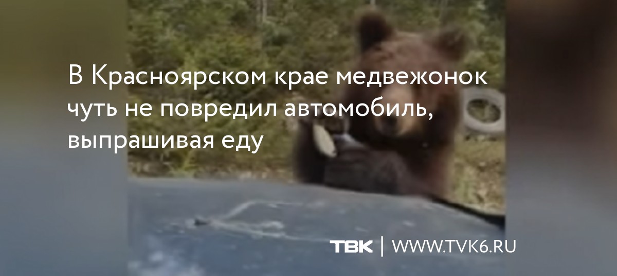 В Красноярском крае медвежонок чуть не повредил автомобиль, выпрашивая еду